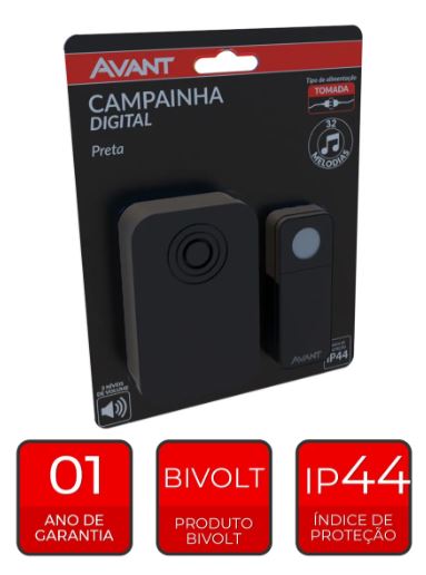 Campainha Digital Tomada Bivolt pt Avant