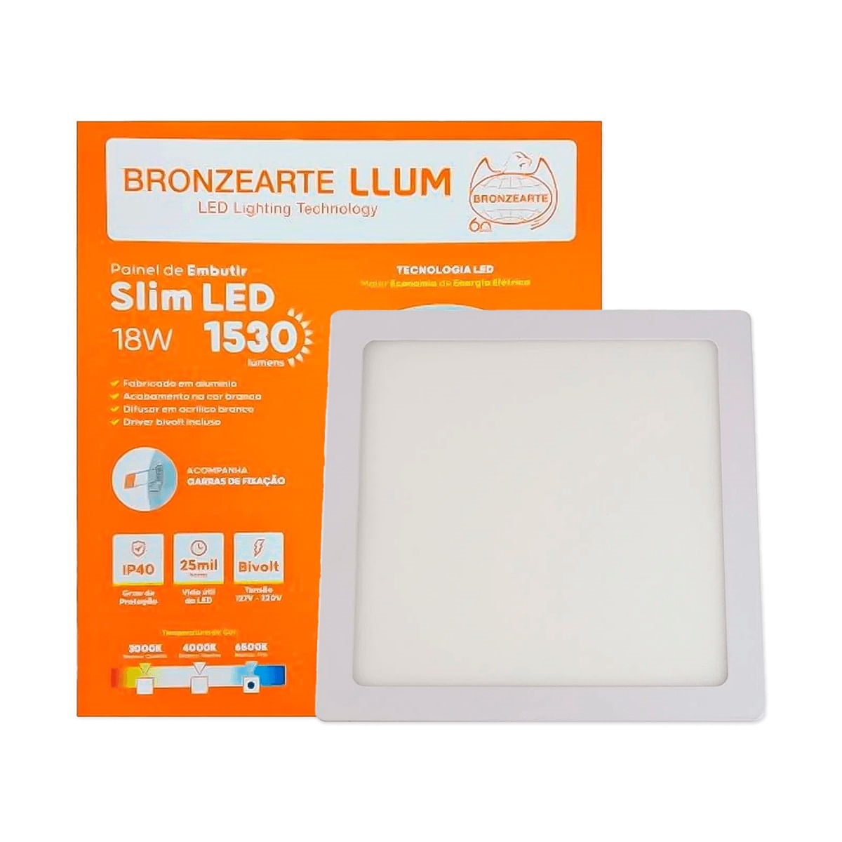 Painel emb qd led 18w 22cm 6500k Llum