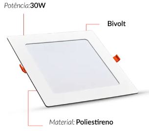 Painel Led Pop Embutir Quadrado 30w 6500k 39cm Bivolt Branco Avant