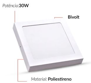 Painel Led Pop Quadrado Sobrepor 30w 6500k 39x39mm Avant